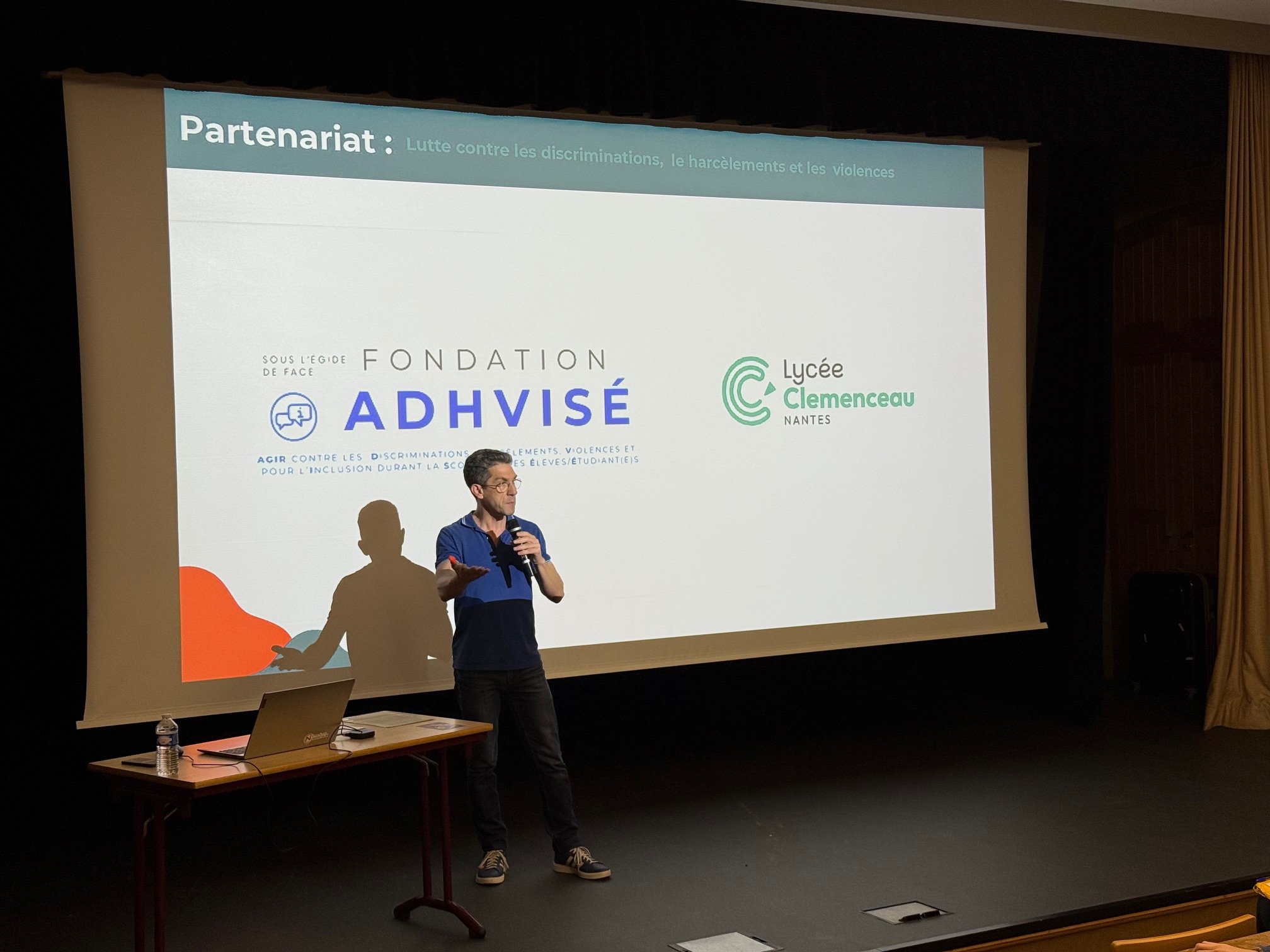 Nous remercions le Lycée Clémenceau et plus particulièrement Monsieur VEILLON pour leur confiance, ainsi que la Fondation Notaire & Breton qui finance ces ateliers contre le cyberharcèlement, et bien évidemment notre partenaire l’association le « Coup de Main Numérique » pour leur formidable animation.