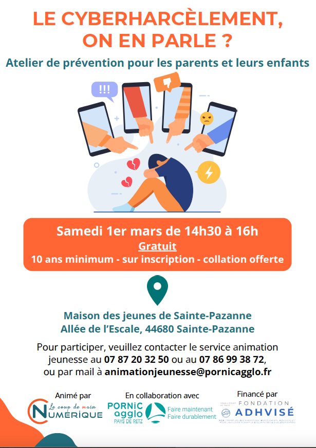 Pour lutter contre ce problème, l’association Le Coup de Main Numérique et la Fondation ADHVISÉ vont mener un atelier de prévention sur la thématique du cyberharcèlement. Il est destiné en premier lieu aux parents et à leurs enfants, mais aussi aux professionnels travaillant avec un jeune public, ou même aux personnes voulant s’informer sur le sujet.